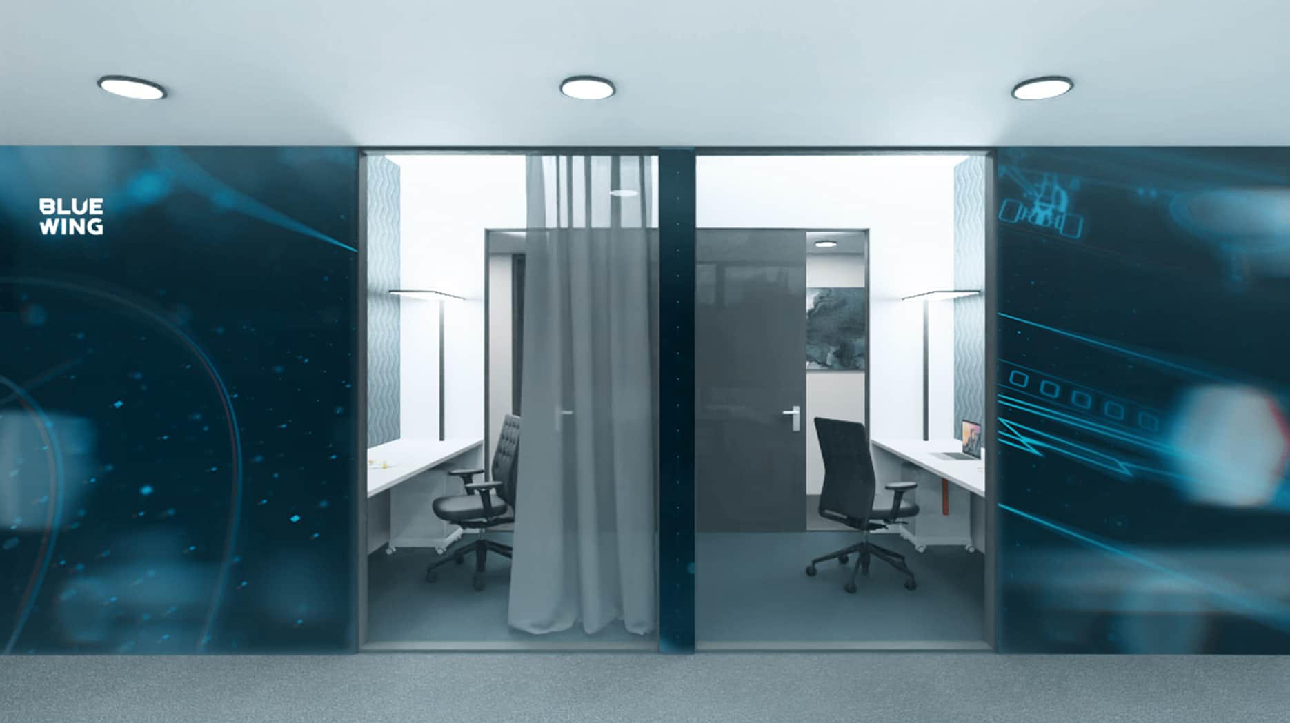 Sie gestalten die Zukunft. Blue Wing bildet den Rahmen. Die unzähligen Gestaltungsmöglichkeiten lassen Ihnen alle Freiheiten. Wir designen Ihr gewünschtes Flächenlayout. Einzel-, Kombi- oder Open-Space-Büros folgen Ihren Wünschen und denen Ihres Teams. Mit der optimalen Büroraumtiefe lassen sich alle modernen Arbeitswelten gestalten.